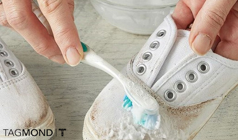 تمیز کردن کفش اسپرت سفید با جوش شیرین یکی از متداولترین روش هاست. زیرا جوش شیرین سایندگی بسیار بالایی دارد و کثیفی ها را به سرعت می زداید، اما باید توجه داشته باشید که به علت سایندگی بالا برای تمیز کردن کفش پارچه ای سفید باید با احتیاط مصرف شود تا بافت پارچهای کفش شما آسیب نبیند.